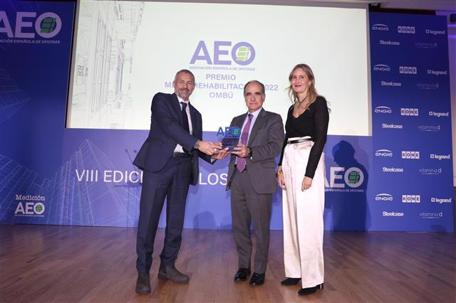 Los tres finalistas fueron: Complejo Triada Madrid, propiedad de la Hermandad Nacional de Arquitectos (HNA); Edificio KOI Madrid de Royal Metropolitan España; y OMBÚ, propiedad de Acciona Inmobiliaria. El jurado de esta categoría destacó la perfecta conjugación entre sostenibilidad, innovación, regeneración y conservación de un edificio emblemático, protegido y en desuso; dotándolo de una nueva vida, recuperando espacios y creando nuevos, perfectamente integrados en las zonas ajardinadas que lo rodean.